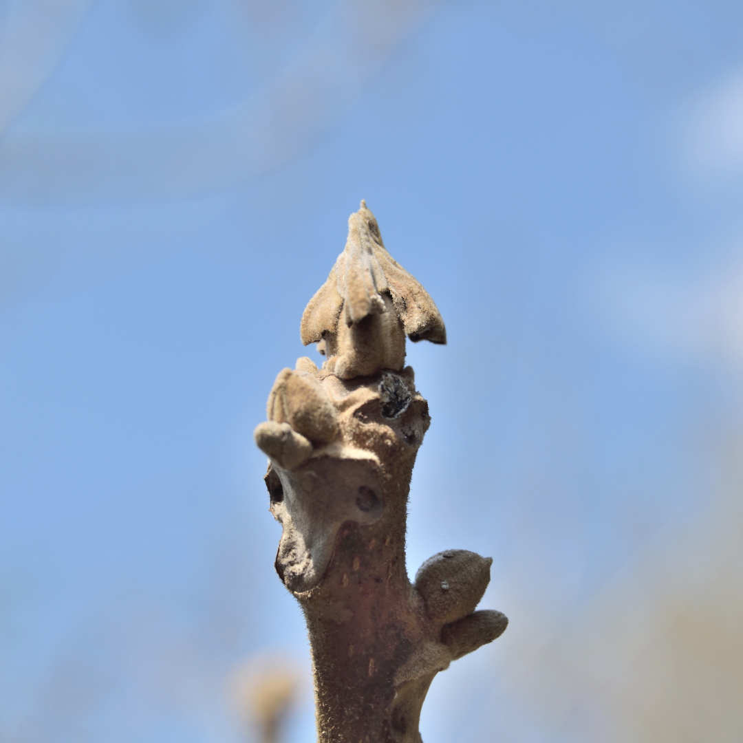 オニグルミの冬芽——そっと帽子を脱ぐとき